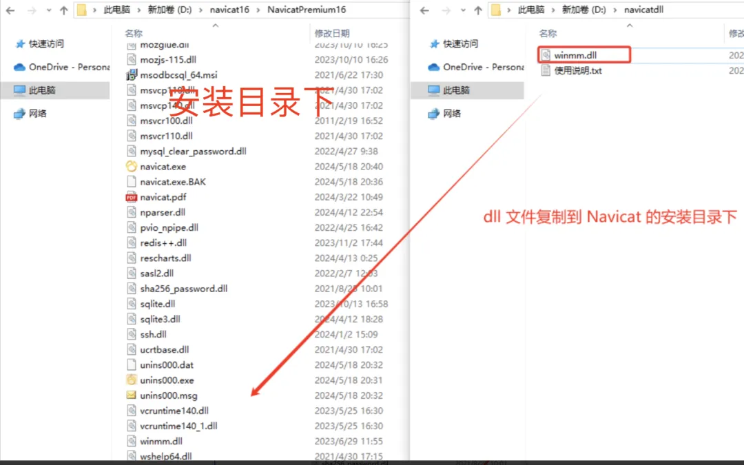 将 winmm.dll 复制,然后打开 Navicat 的安装目录下,粘贴到这里。