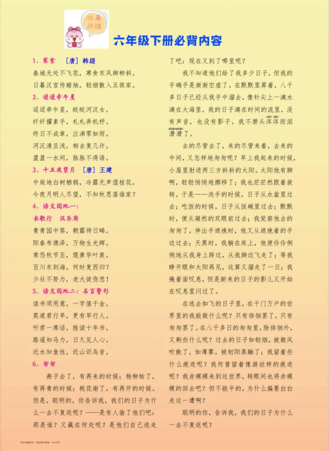 26年六年级语文上册【寒假特色作业】,免费下载打印