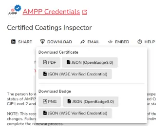 AMPP已从2021年开始全面进行了证书升级,目前AMPP的证书均为电子证书,并通过证书右上角的二维码可以快递识别证书有效性。持证人员可以通过以下方式下载自己的证书。