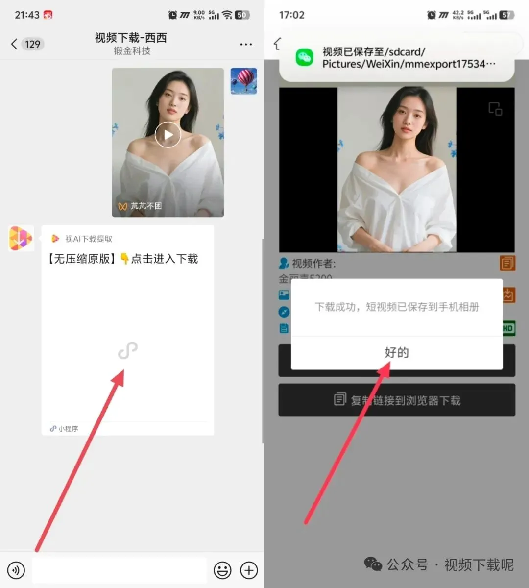 ② 视频下载客服机器人会在眨眼间自动解析,并立刻返回一个下载小程序。