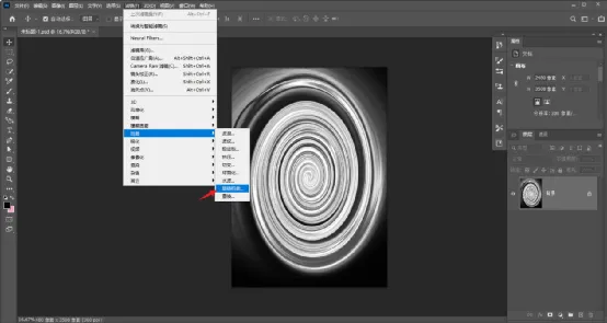 第三步,滤镜,扭曲,旋转扭曲,角度999.