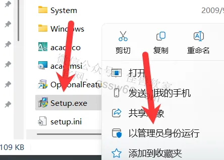 09,返回“install”文件夹,找到并选中“Setup.exe”安装程序,点击鼠标右键,点击“以管理员身份运行”
