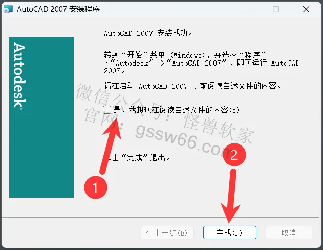 22,取消勾选“我想现在阅读自述文件”,点击“完成”