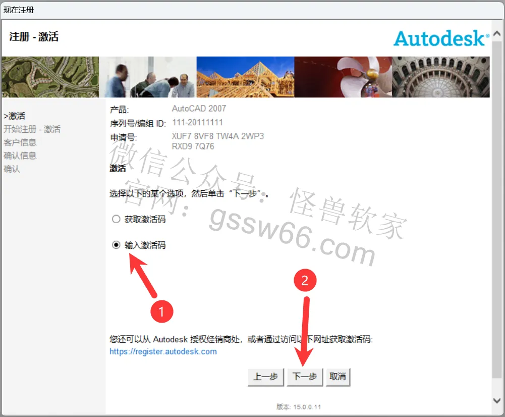 35,把激活码复制到CAD激活码框内,点击“下一步”
