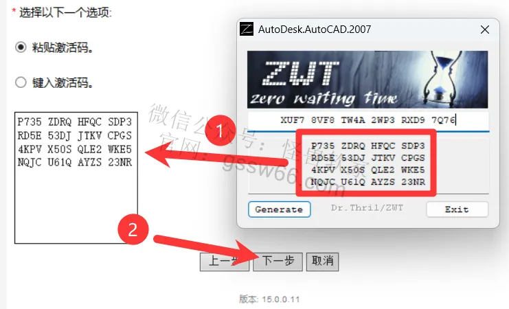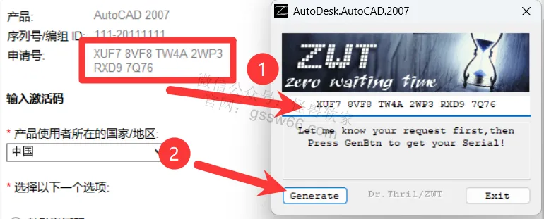 34,把CAD申请号复制到注册机内,点击“Generate”