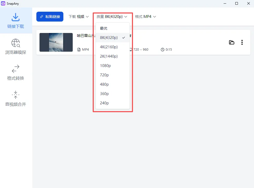 最高支持 8K(4320p) 画质下载,同时提供 4K、1080p、720p 等多档选择,满足不同需求。