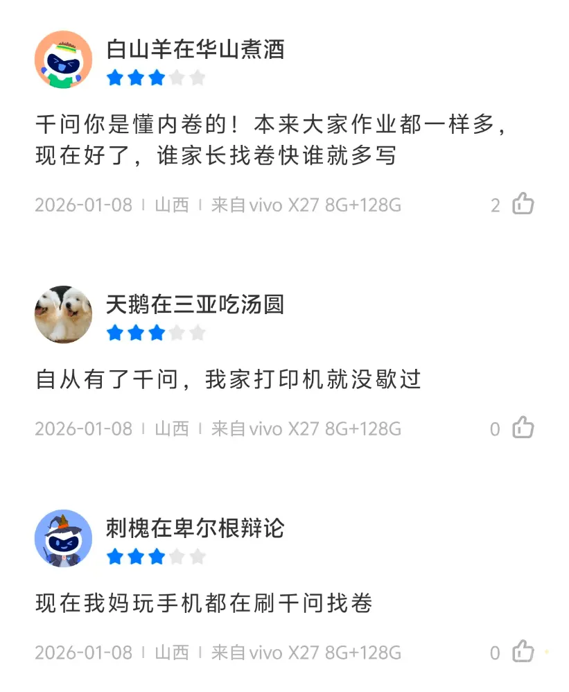 最近阿里的千问APP又火了,评价是非常严重的两极分化,给1星差评的主要就是学生群体: