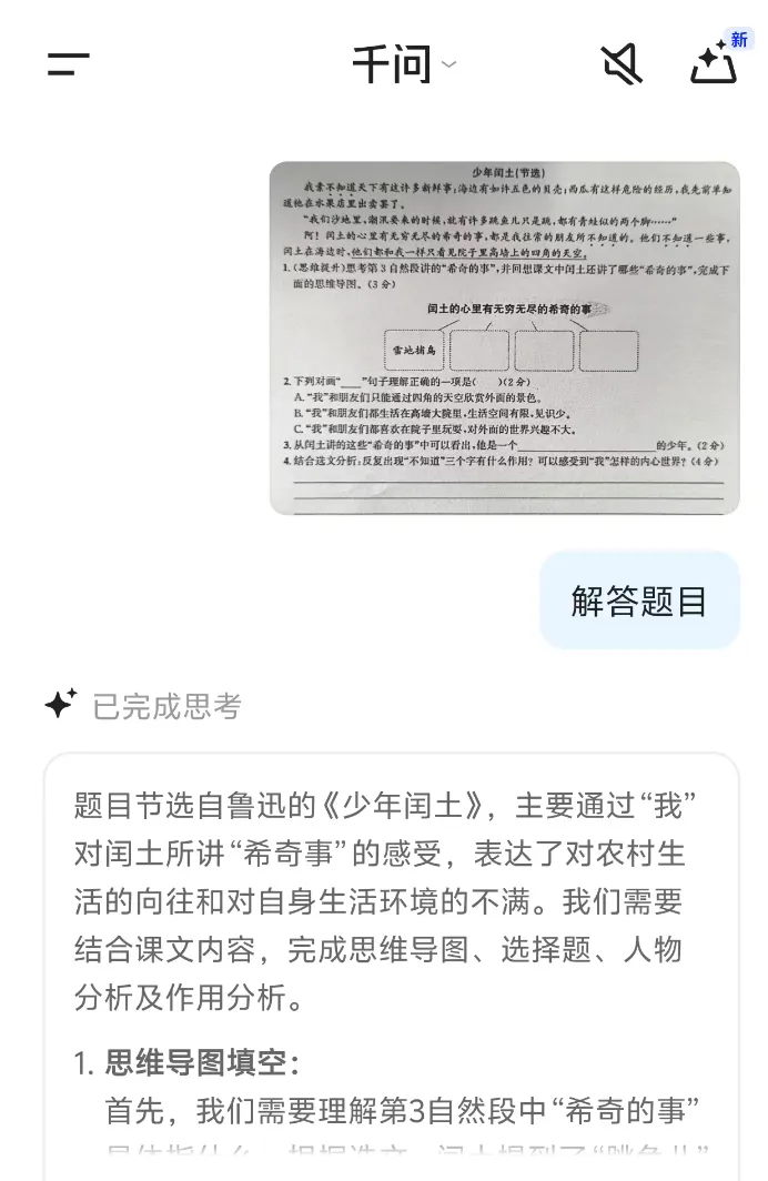 直接在千问的APP中,按“地方+年级+学科+类别”的关键词,发给AI。