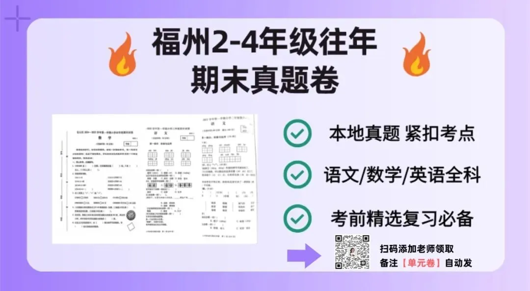免费下载 | 福州小学2~4年级【5-8单元】测试卷+往年期末真题!