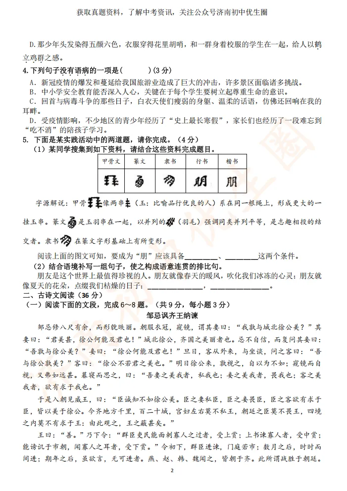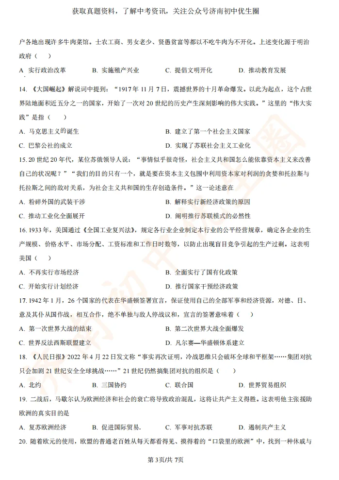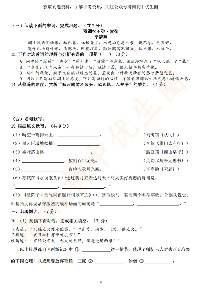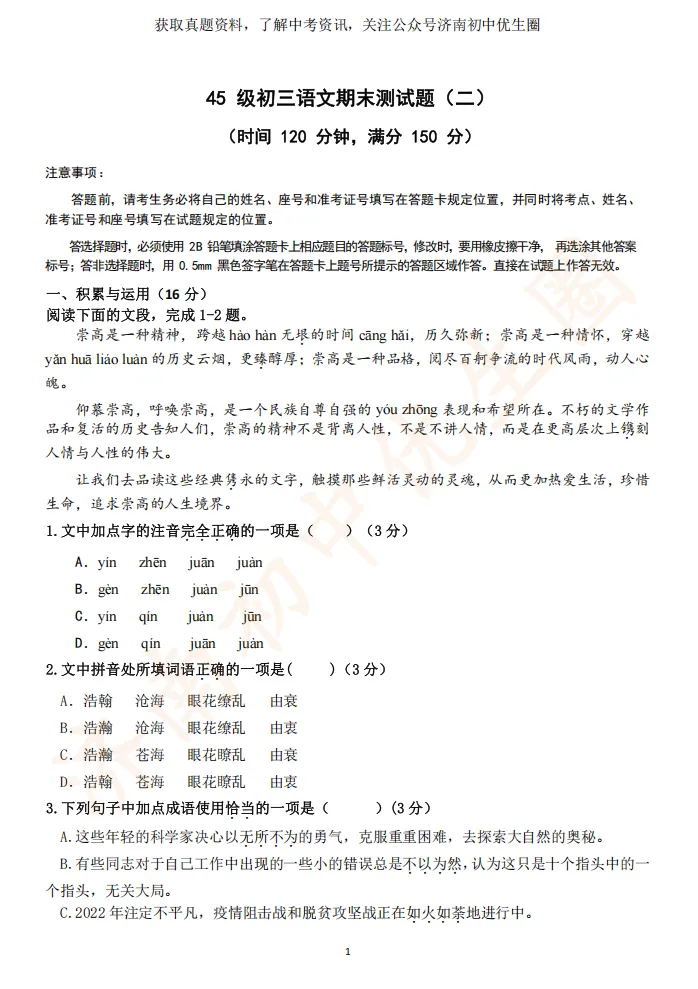 一模时间定了!24年济南初三一模真题+答案解析免费领取!