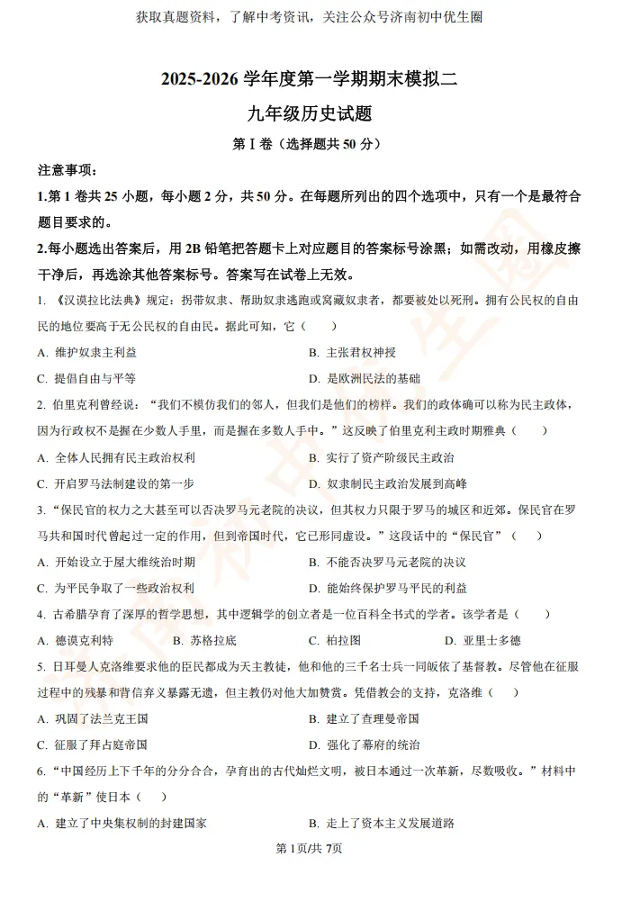 历下又难哭了?2025.3历下区一模数学+物理试卷“出炉”,速领真题
