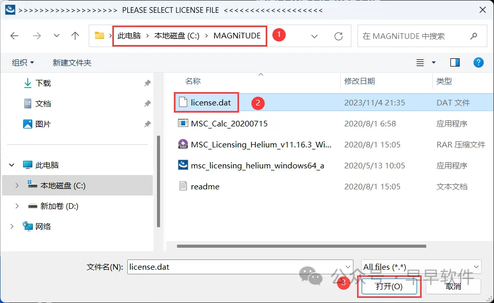 14、选择路径C:\ MAGNiTUDE下的【license.dat】文件,再点击【打开】