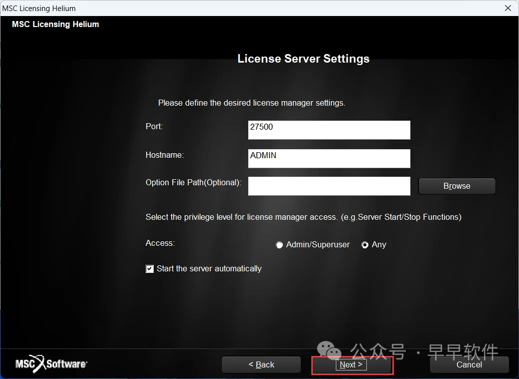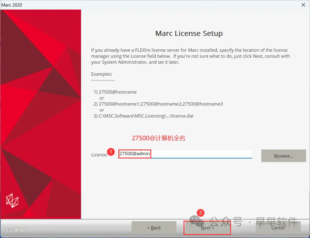 27、License输入:27500@计算机名,计算机名查看如下,再点击【Next】