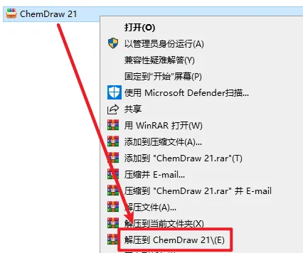 1.选中下载好的安装包,右键选择”解压到 ChemDraw 21“2.打开解压好的文件夹,选中“CD.21”,右键选择“以管理员身份运行”