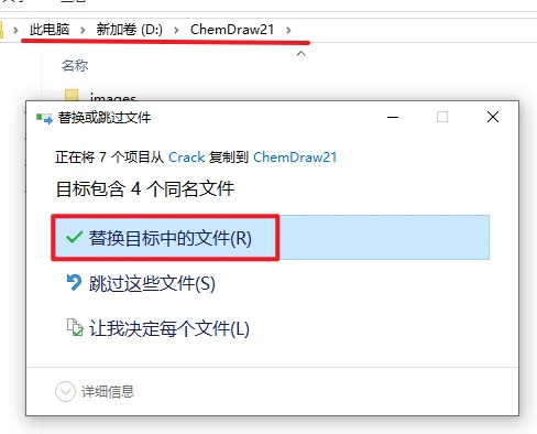 14.返回安装文件夹,在打开“Crack”文件夹,复制下面的所有文件夹15.打开软件的安装路径,站体复制的文件夹到该路径下,选择“替换目标中的文件”