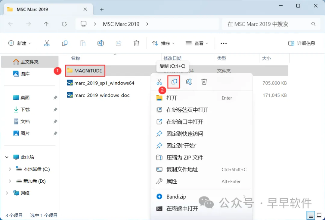 1、下载MSC Marc 2019软件安装包到电脑上,右键选择【解压到MSC Marc 2019\】
