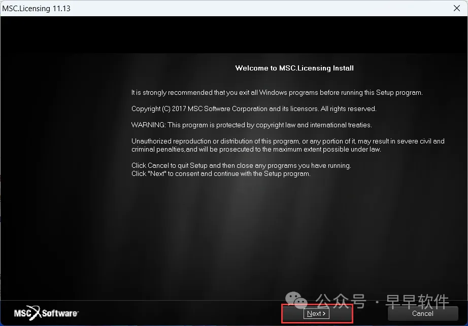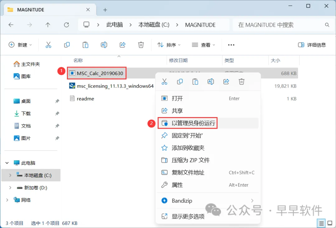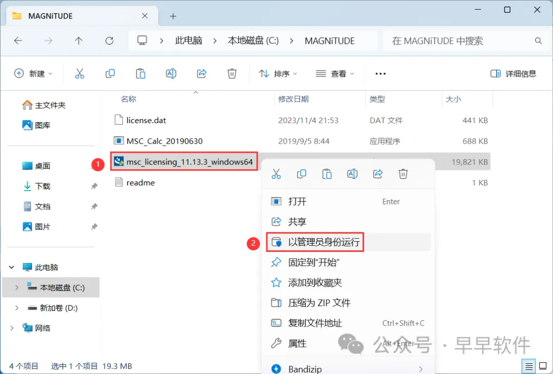 9、找到【msc_licensing_11.13.3…】应用程序,右键选择【以管理员身份运行】它