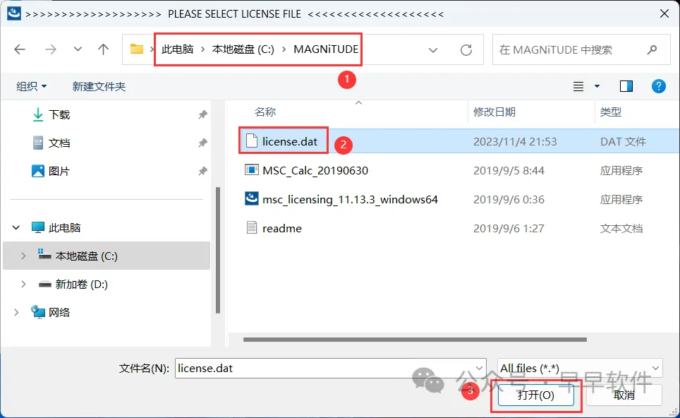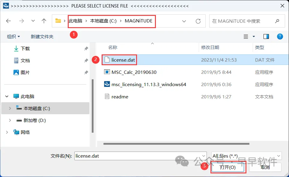 15、选择路径C:\ MAGNiTUDE下的【license.dat】文件,再点击【打开】