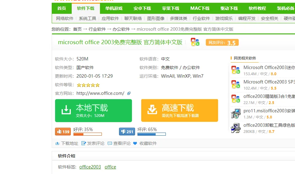 安装office2003之前需要先将电脑中的office其他版本卸载干净,以免安装失败。office一般不容易卸载彻底,这里推荐一些office专用卸载工具:http://www.downcc.com/k/officexiezai/