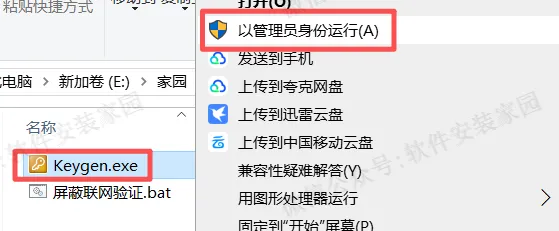 9、选中Keygen,鼠标右键选择“以管理员身份运行”