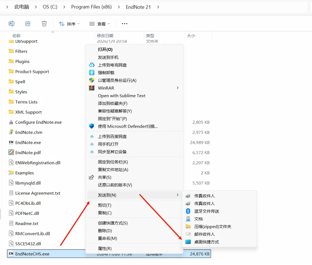 EndNoteCHS.exe,右键选择发送到桌面创建桌面快捷方式