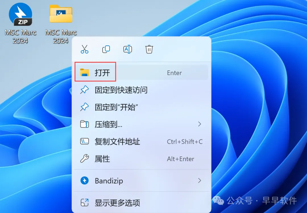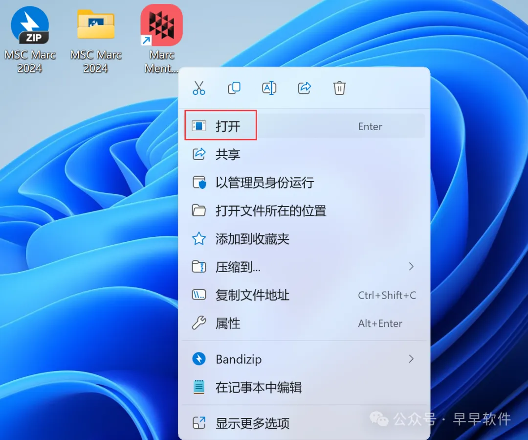27、回到桌面,右键桌面上的【MSC Marc 2024软件图标】,点击【打开】