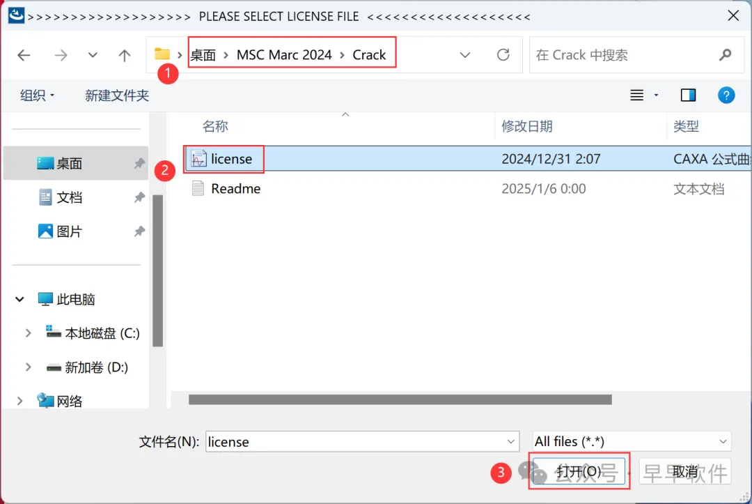 8、选择安装包Crack下的【license.dat】文件,再点击【打开】