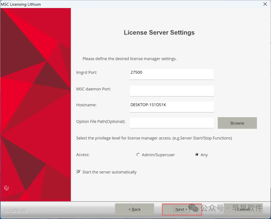 21、License输入:27500@计算机名,计算机名查看如下,再点击【Next】
