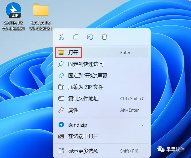 29、回到桌面,右键桌面上的【CATIA P3 V5-6R2021软件图标】,点击【打开】