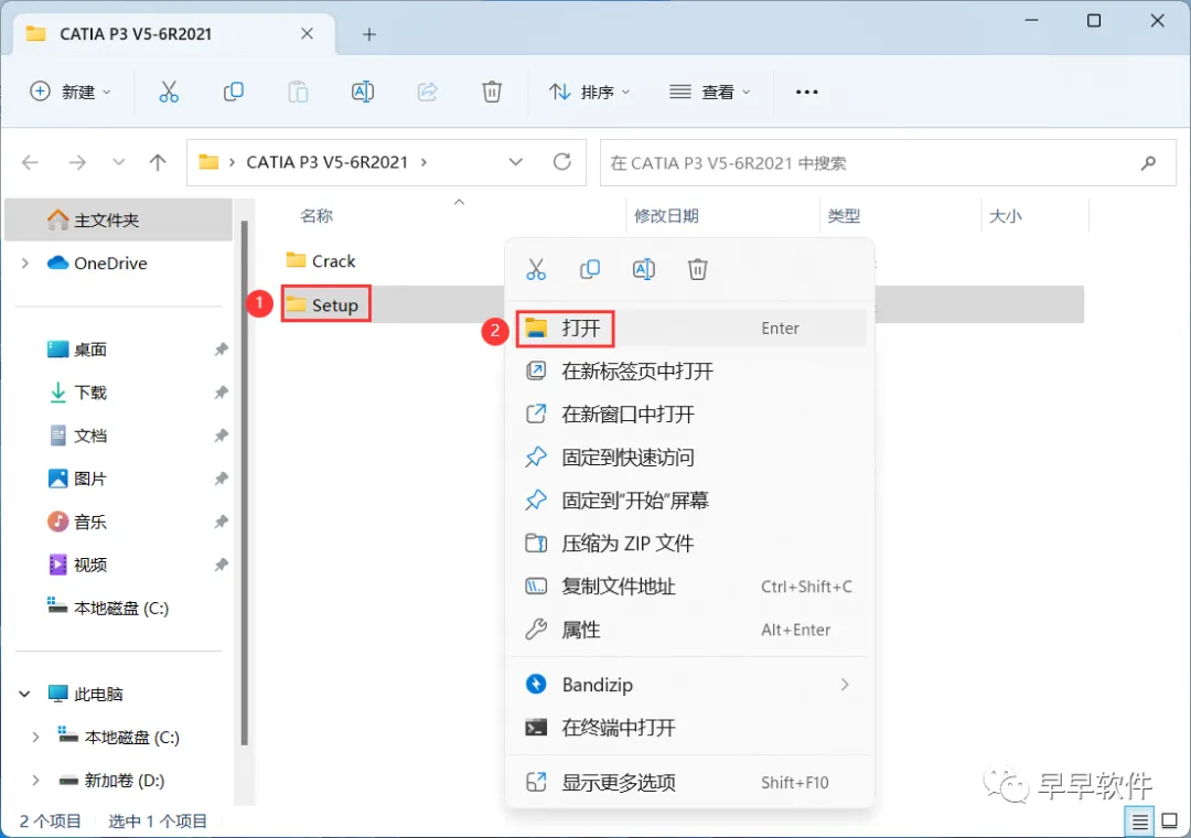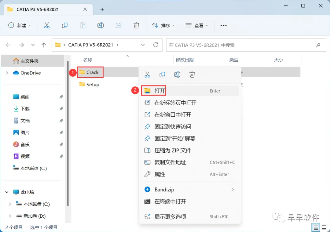 24、回到CATIA P3 V5-6R2021文件夹,找到【Crack】文件夹,右键【打开】它