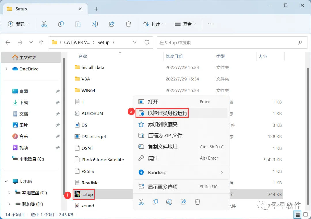 4、找到【setup】应用程序,右键选择【以管理员身份运行】它
