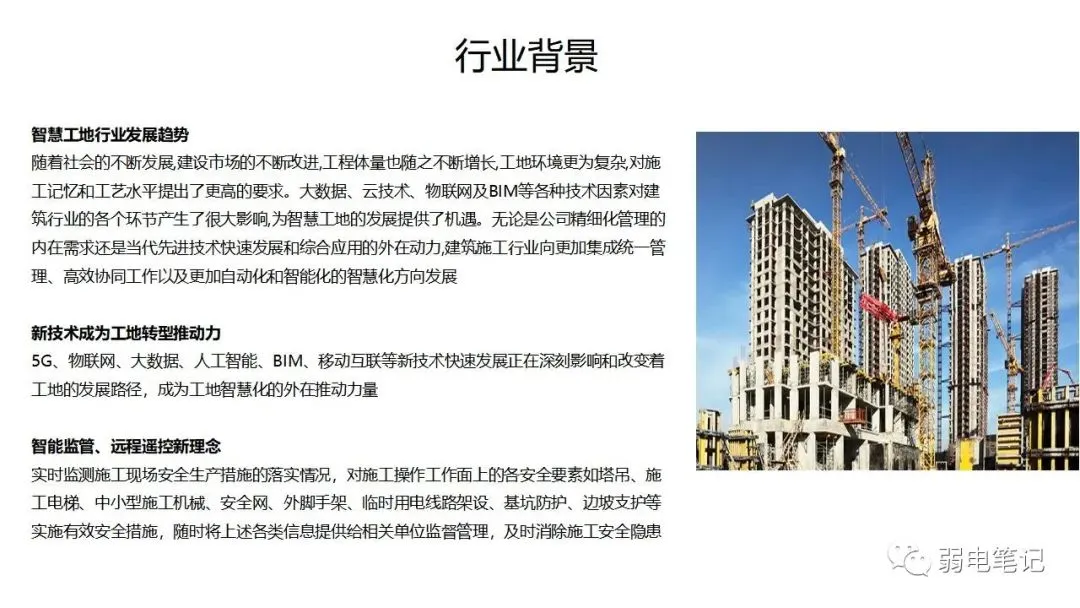 当前工程体量都非常之大,工地生产环境也日趋复杂,因此对工地监管提出了更高的要求。随着BIM和物联网技术的应用,也为智慧工地的建设提供了更多的技术支撑,推动着工程管理向分散监视、集中管理、高效协同的目标发展。