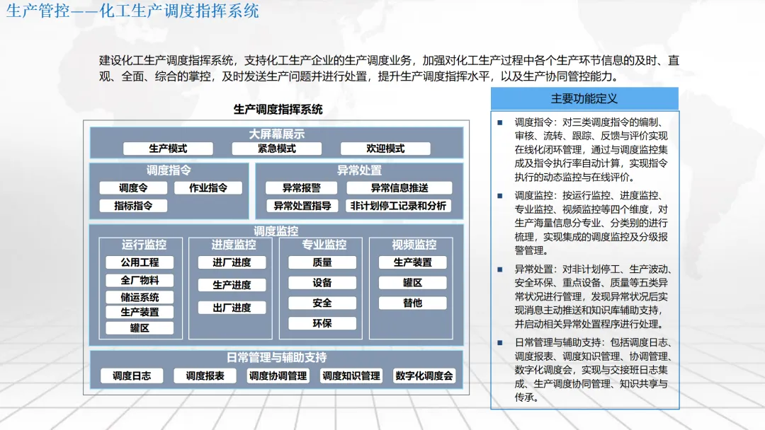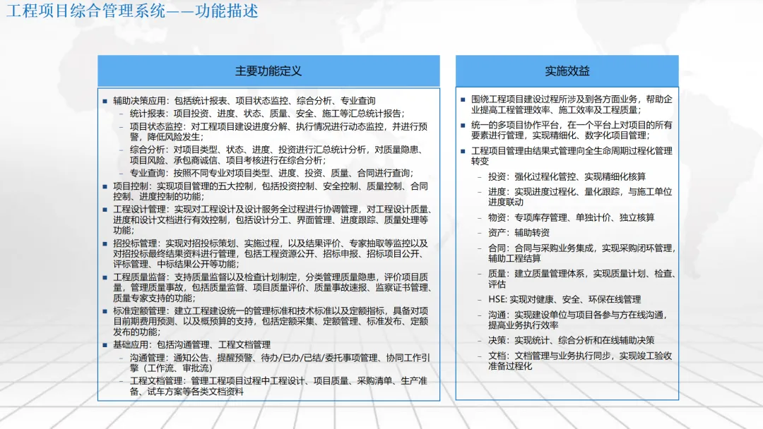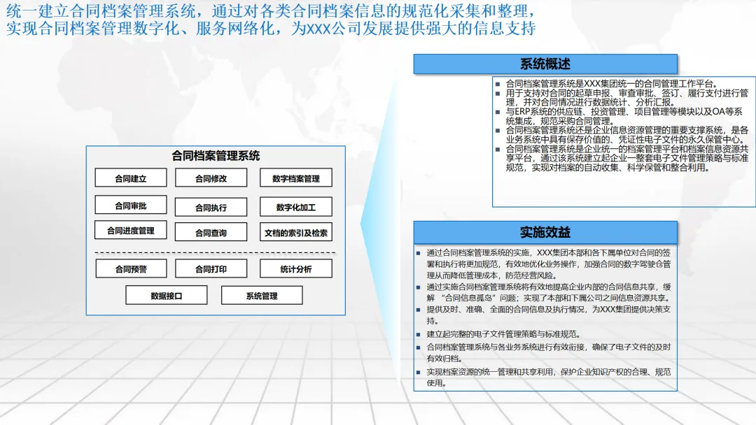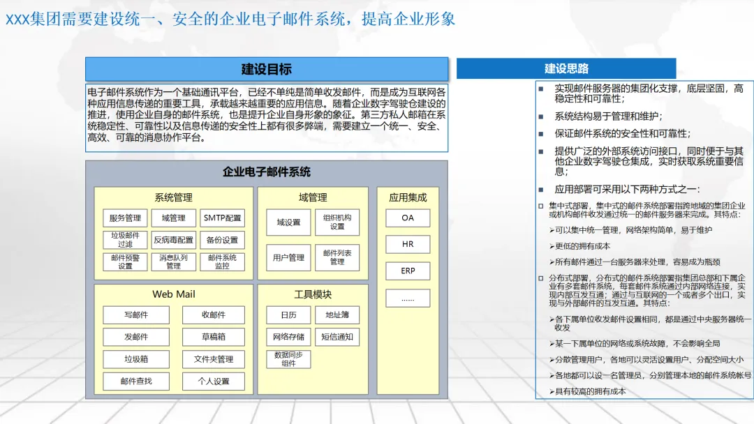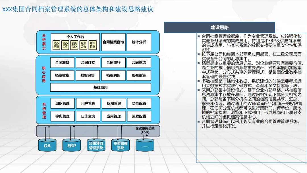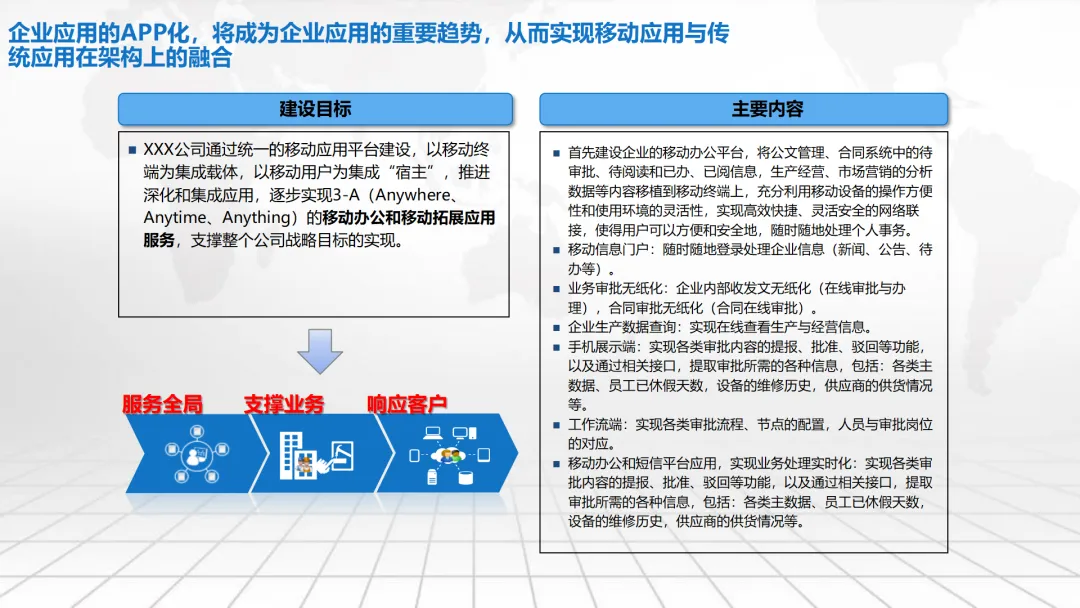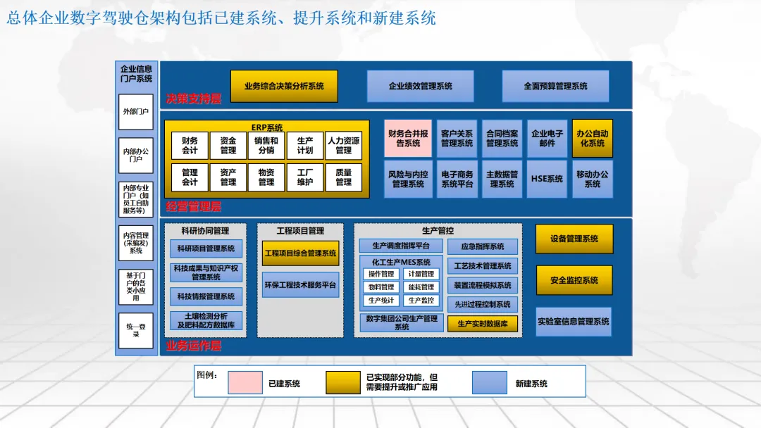 本方案围绕企业数字化转型中的“数字驾驶舱”建设展开,系统阐述了涵盖数据架构、IT基础设施、组织管控、绩效评价及典型应用场景的整体解决方案。内容不仅包括合同档案管理、工程项目管理、测土配肥、环保技术服务和化工生产调度等业务模块的数字化设计,还强调通过集成ERP、CRM、供应链等系统,构建统一的数据底座与决策支持平台。同时,提出以平衡计分卡为框架的IT绩效评价体系,并规划了从集中管理到分级运维、再到持续优化的三阶段实施路径,旨在助力企业实现精细化运营、科学决策与战略落地。