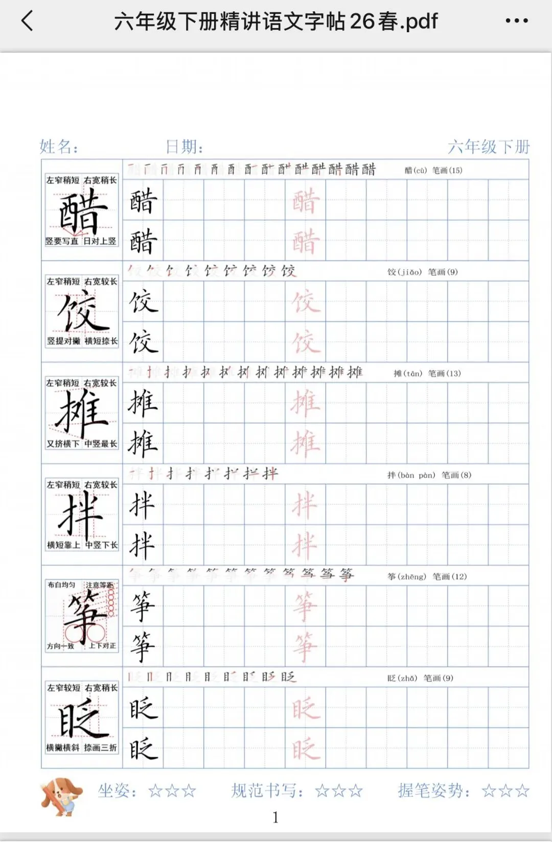 >一-六下册精练字体免费下载,为一线教师尽微薄之力(不知道怎么下载的可以看最后一张图)