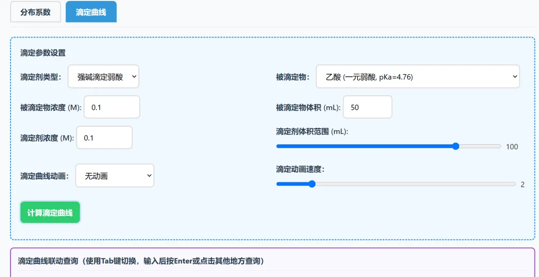 - 数据联动:分布系数与滴定曲线数据相互关联