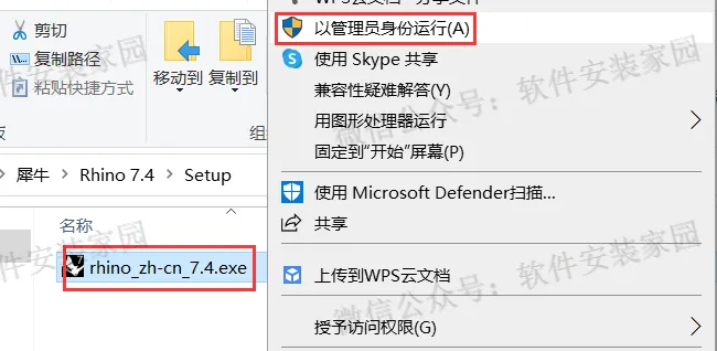 3.选中rhino_zh-cn_7.4鼠标右击,点击以管理员身份运行。