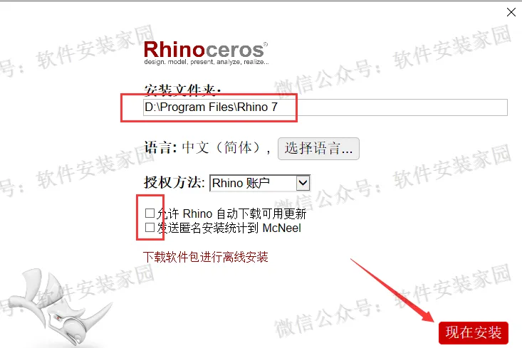 5.修改安装地址:把默认的C改成你需要安装的磁盘即可,比如小编要安装在D盘,就把C改成D即可。取消2个勾选。点击“现在安装”
