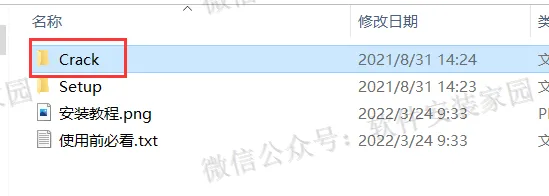 8.回到前面解压的安装包文件夹的地方,双击打开【Crack】文件夹。