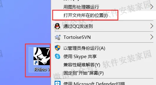 10.在桌面上选中Rhino 7图标,鼠标右键选择“打开文件所在的位置”