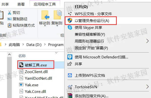 12.选中粘贴进去的破解工具,鼠标右击选择“以管理员身份运行”。