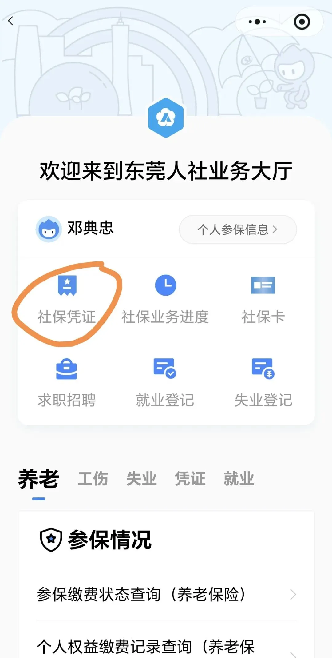 - 首页直接点「社保」,下拉找到显眼的「社保凭证」入口,点击进入