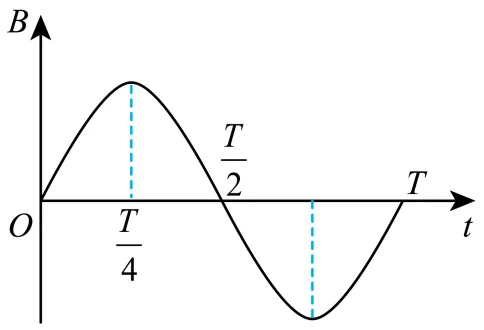 6.闭合金属框放置在磁场中,金属框平面始终与磁感线垂直。如图,磁感应强度B随时间t按正弦规律变化。为穿过金属框的磁通量,E为金属框中的感应电动势,下列说法正确的是()