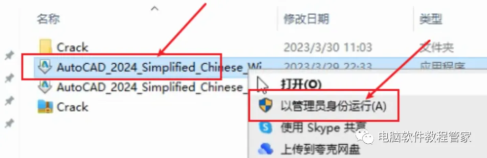 4.鼠标右键以管理员身份运行AutoCAD_2024_.....001程序;