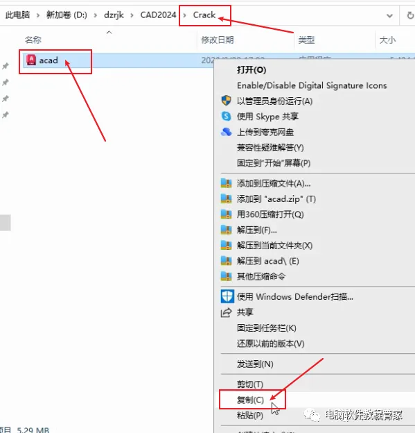 12.返回初始安装包,双击打开Crack文件文件夹,复制acad文件;
