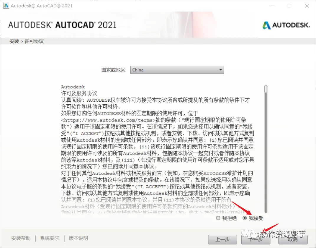 5.勾选【我接受】,点击【下一步】
