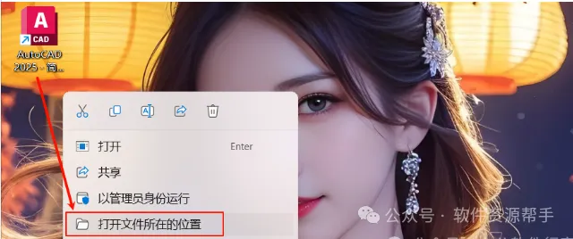 11.鼠标放在软件上,选择“打开文件所在的位置”