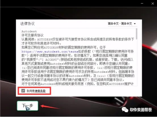 5. 勾选”我同意“,然后点击”下一步“。