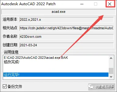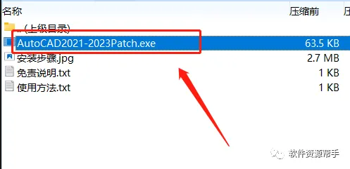 9、返回之前解压的“激活文件”文件夹,找到并选中“AutoCAD2023-2022-2021Patch.exe”,鼠标右键点击“复制”