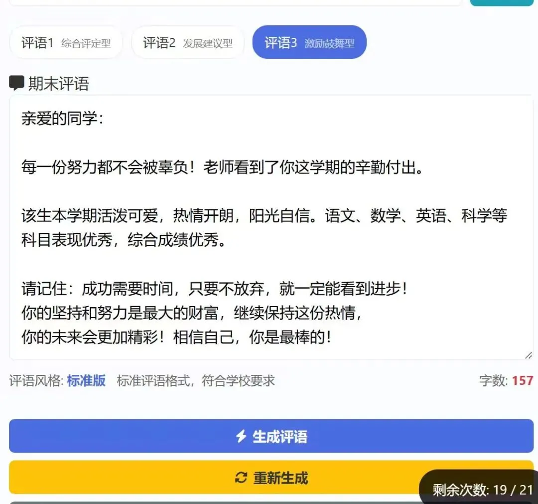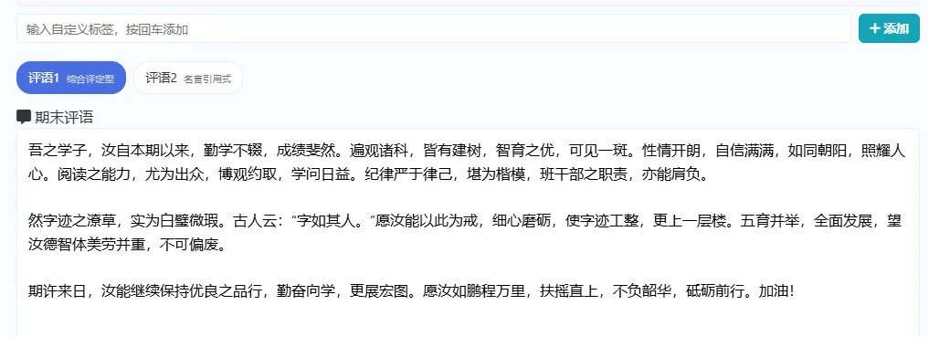 期末评语生成器终于能够自动生成了
