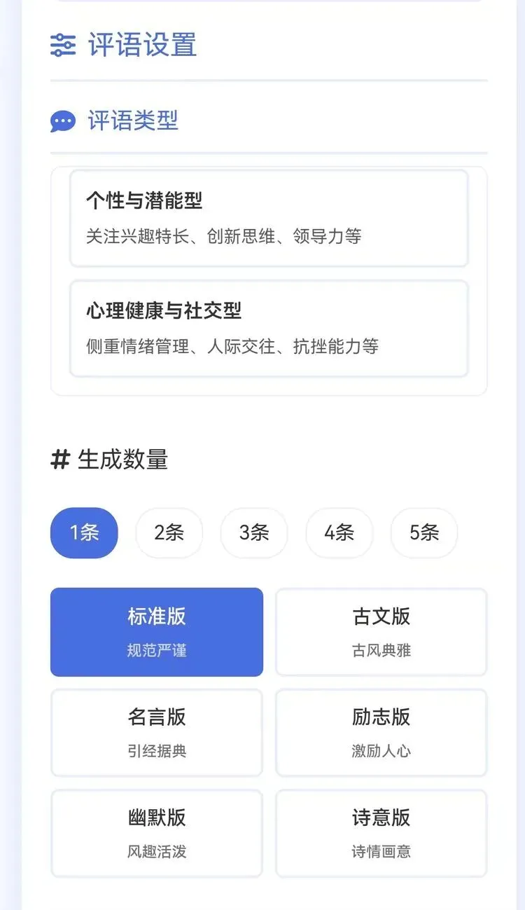支持各种评语类型